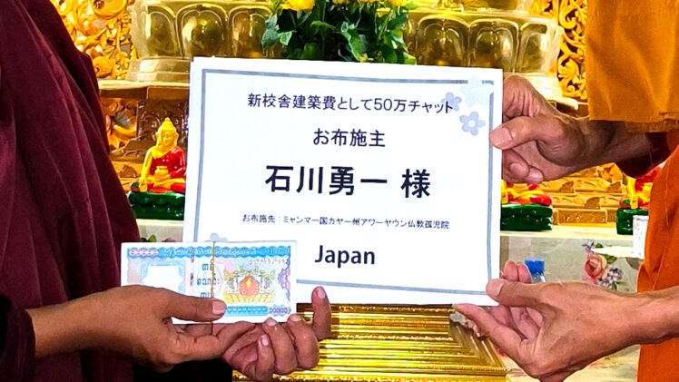 活動報告 「安養寺みんなの仏教様」が戦闘続くカヤー州の孤児院に新校舎建築費をお布施して下さいました