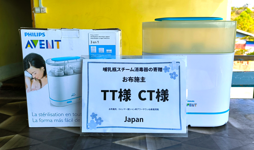 TT様CT様が貧しい孤児院に哺乳瓶スチーム殺菌器を寄贈してくださいました