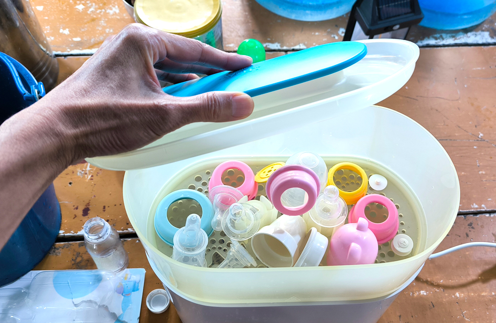 この様な困った状況の中、TT様CT様が哺乳瓶蒸気殺菌器を孤児院に寄贈してくださいました