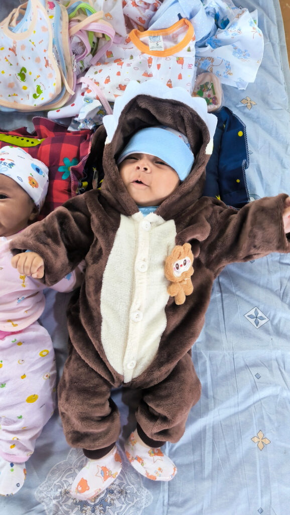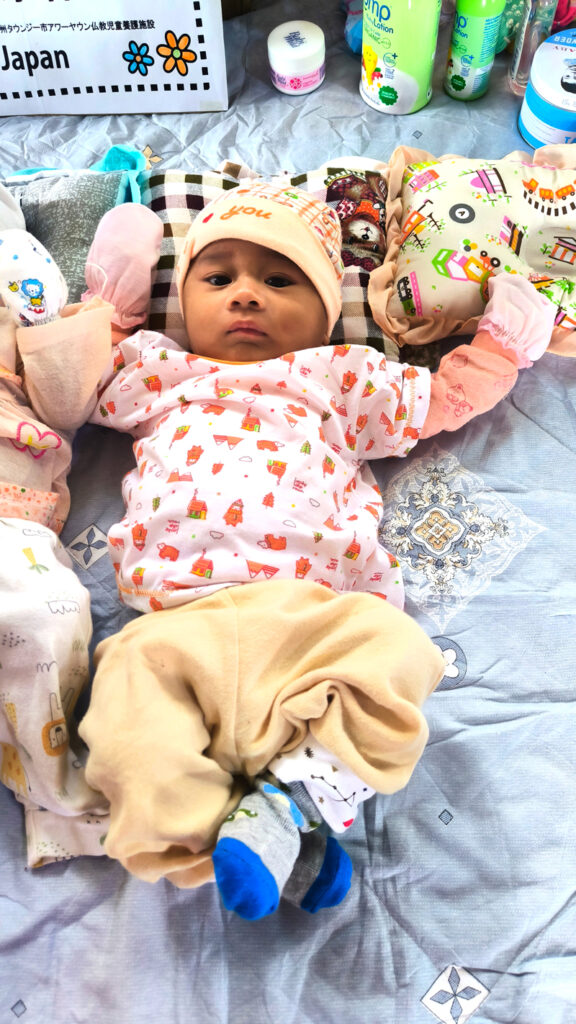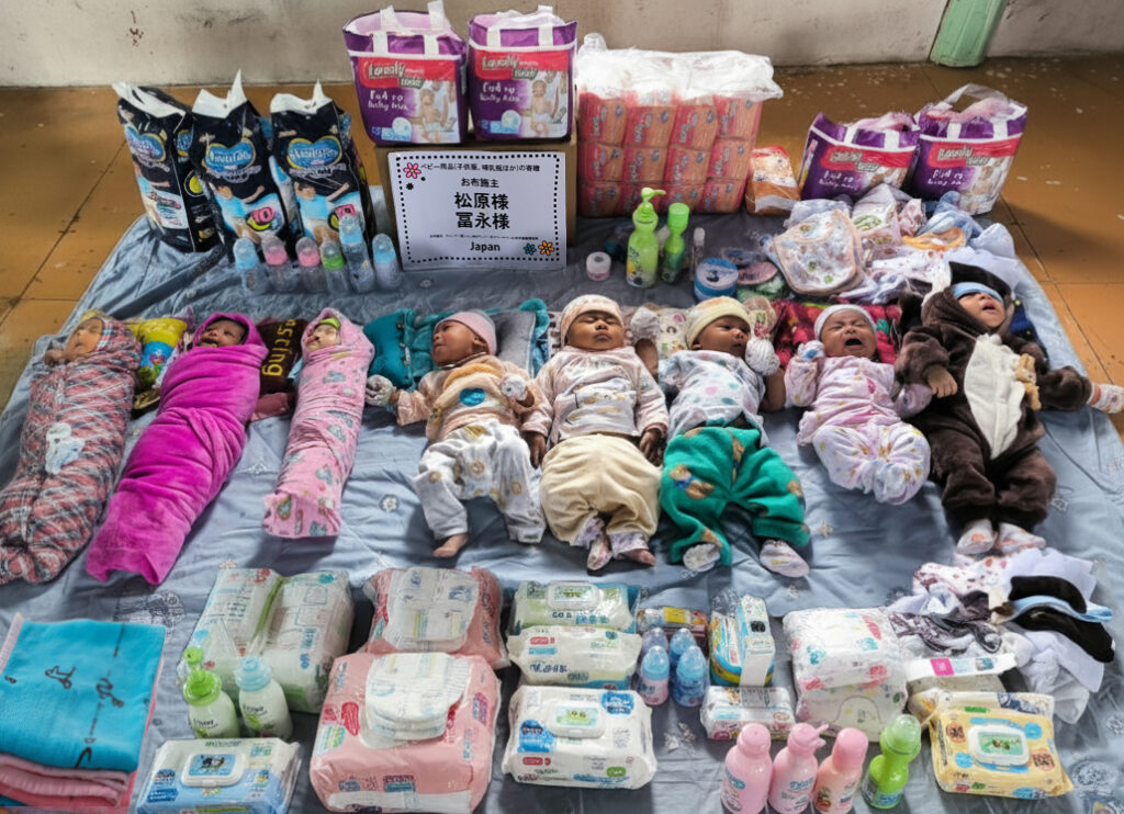 生まれて2週間の子、2か月の子、6っか月の子など、乳児だけで10人以上になり、代表の和尚から、「沢山のベビー用品が必要になったので助けてほしい」と連絡がありました。