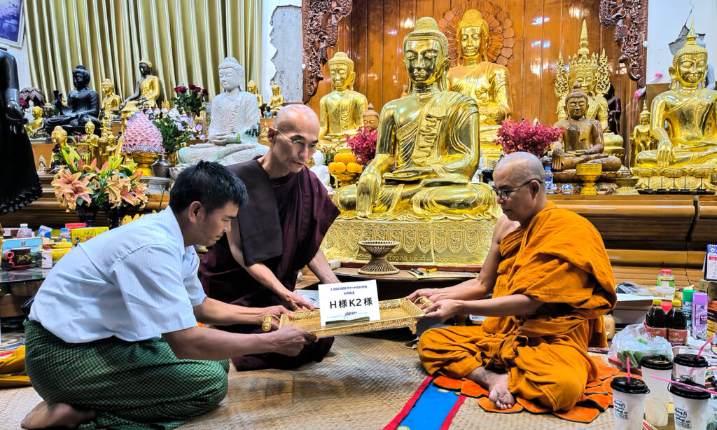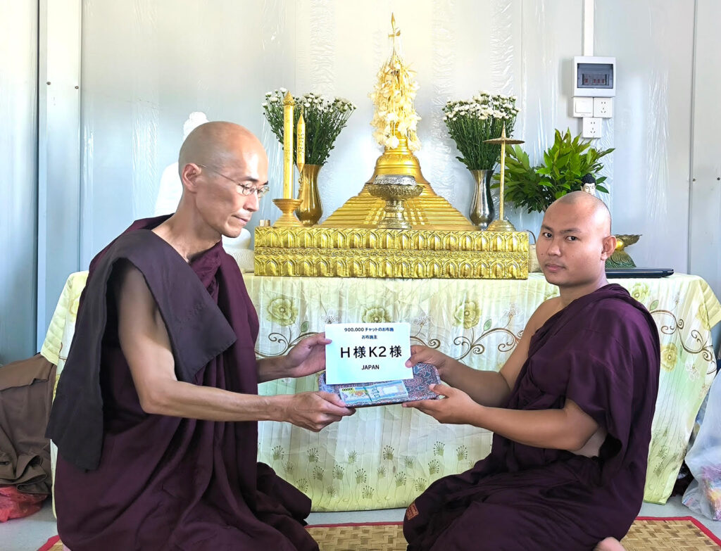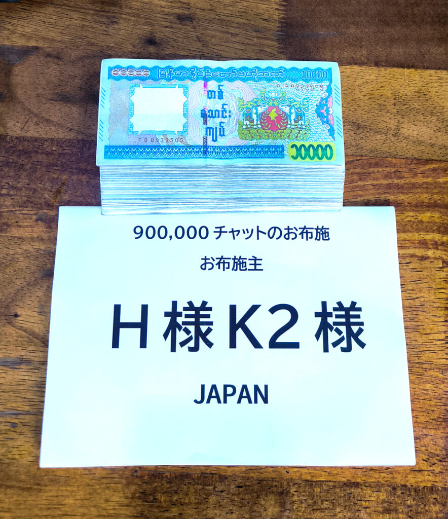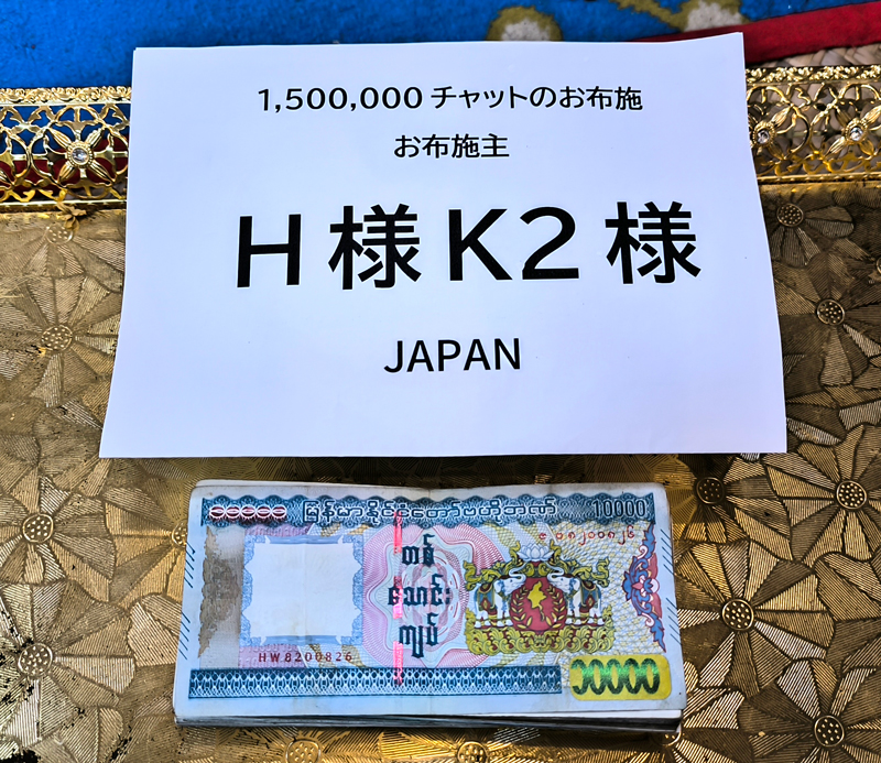 3月28日に起きたミャンマー大地震で大勢の死傷者が出てしまいました、ヤダナーティンギー尼僧院学校とマソーイン・パリヤッティー僧院にH様、K2様が復興再建費をお布施して下さいました。
