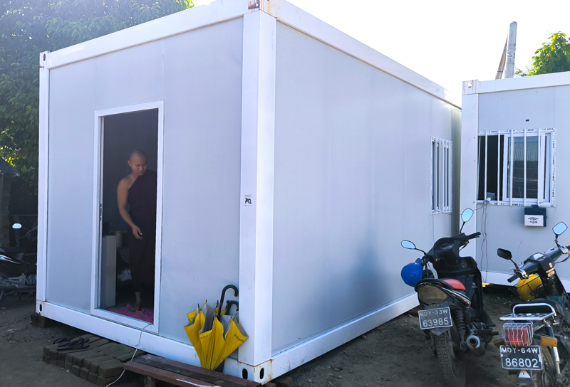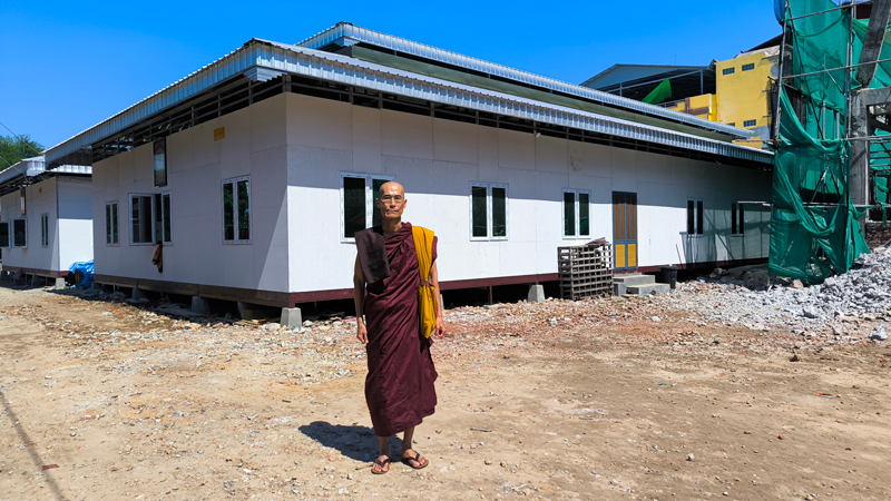 仮設事務所も設けられていますが、この日は代表の尼さんはヤンゴンに出張に行っており不在でしたので、代わりに留守番を任されている僧侶にこの事務所でお布施を受領して頂きました。