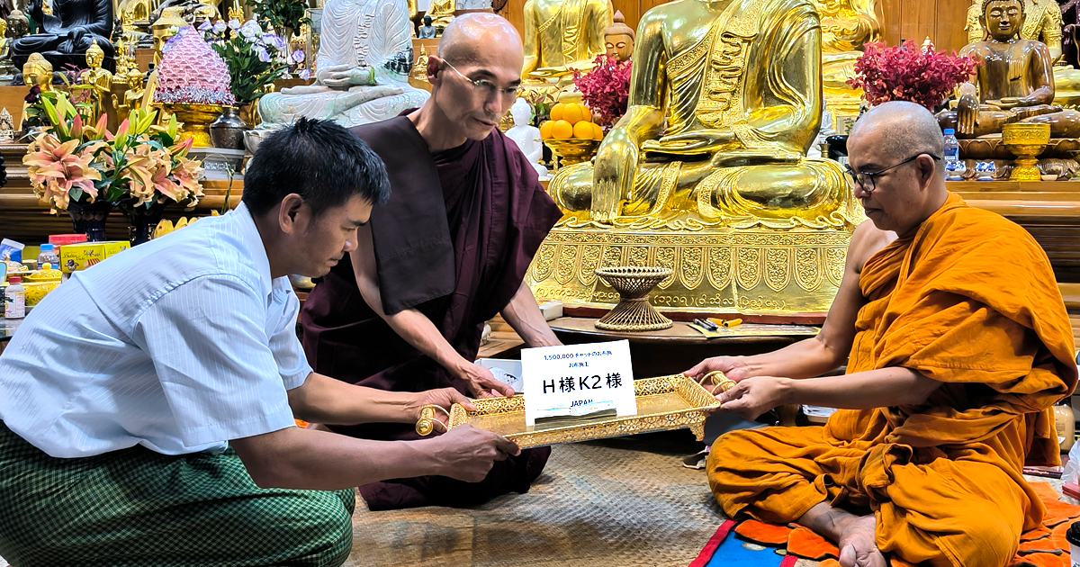 地震により21名が亡くなり45名の重軽傷者を出してしまったマンダレー市にありますマソーイン・パリヤッティー僧院学校にH様、K2様が1,500,000チャットをお布施くださいました。