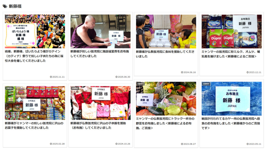 新藤様からはこれまでに全国各地の施設に多大な救済を頂いております。