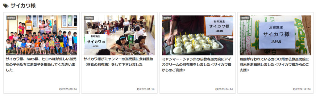 サイカワ様、昨今の物価高で運営厳しい孤児院に温かい「慈愛」の手を差し伸べて下さりありがとうございました。代表の和尚からくれぐれもサイカワ様に宜しくお伝えくださいと頼まれました。わたくしからも深くお礼を申し上げさせていただきます。