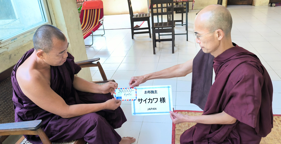 サイカワ様がヤンゴンにありますピーニャーミェーと言う仏教孤児院に施設運営費300,000チャットを寄進してくださいました。