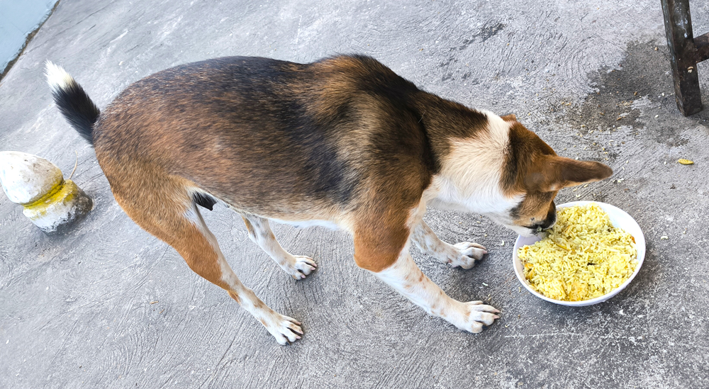 食欲旺盛なチャッピーにはいつも食べきれないほどのご飯を与えています。