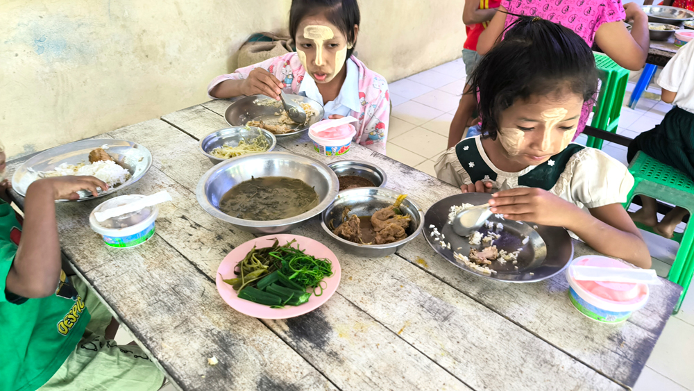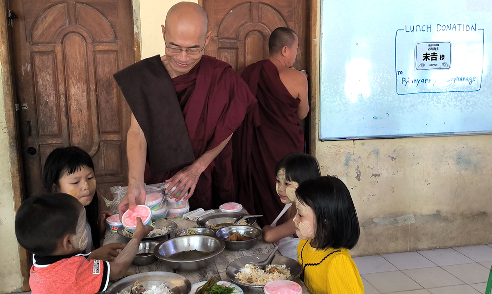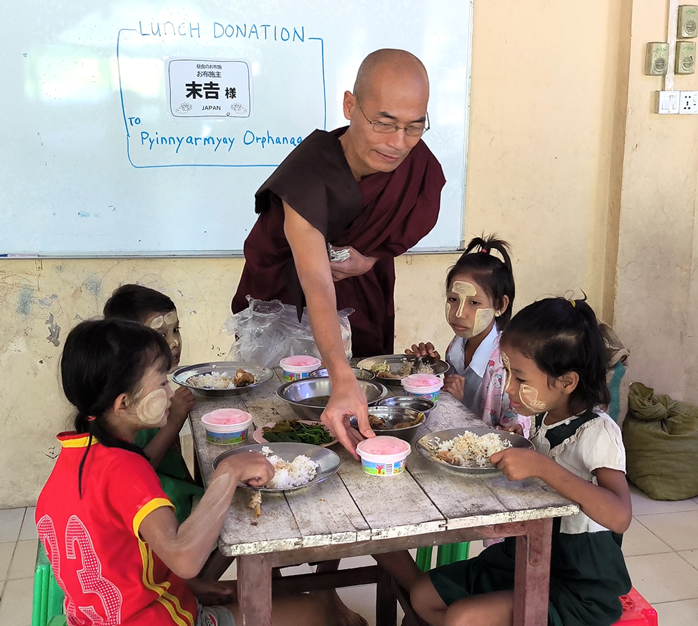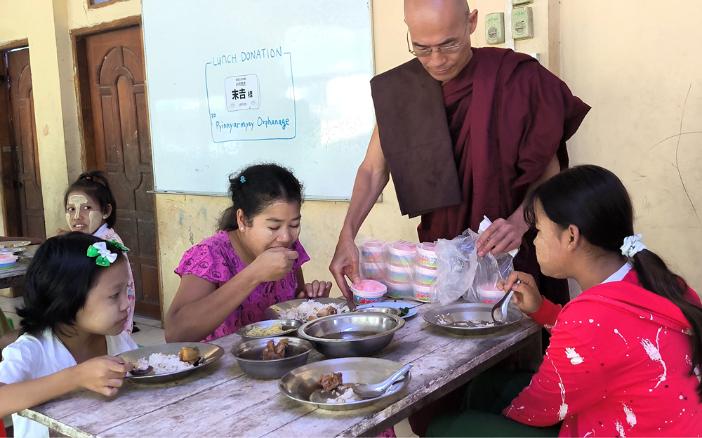 30人の孤児たちが暮らすヤンゴン市にありますピーニャーミェー孤児院に末𠮷様が昼食とアイスクリームのお布施をして下さいました。