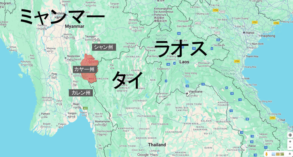 場所はミャンマー国の東部で、シャン州とカレン州に挟まれたタイと国境を接する州です。