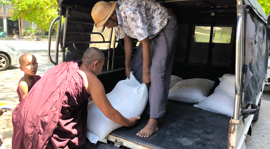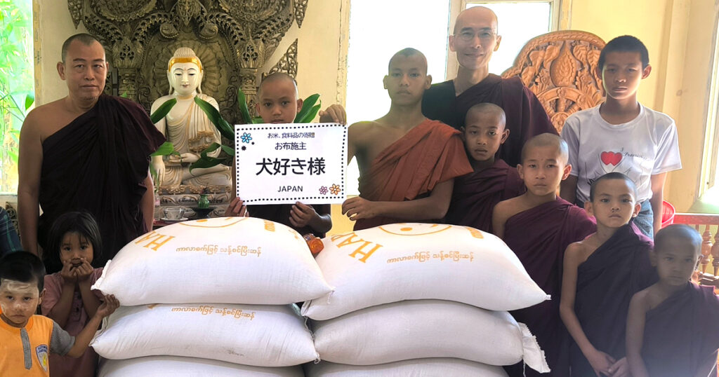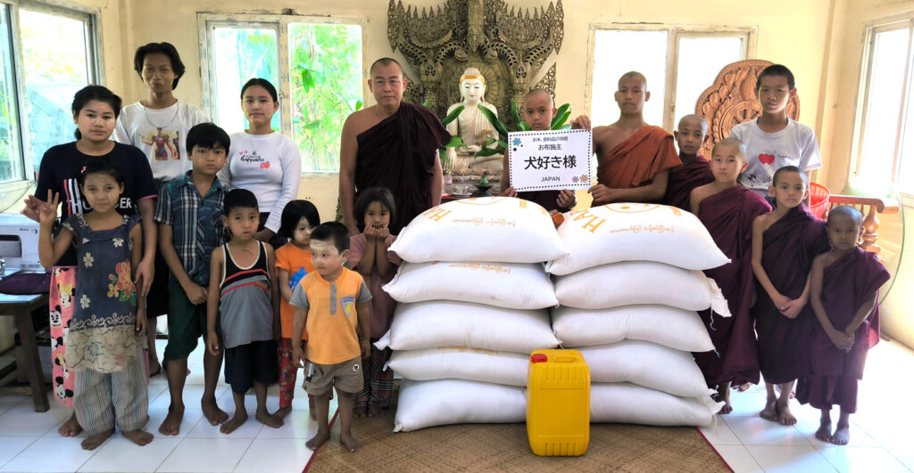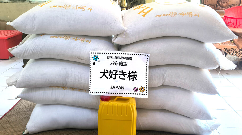 約30人の子供たちが暮らすヤンゴンにありますピーニャーミェーという仏教孤児院に犬好き様が大量のお米と食用油をお布施して下さいました。
