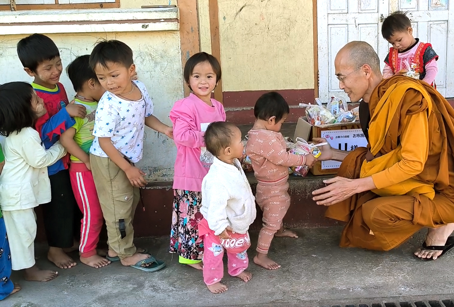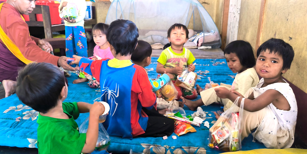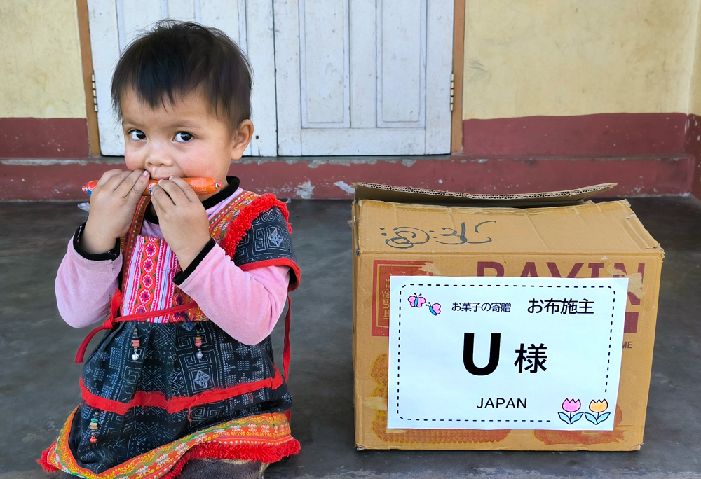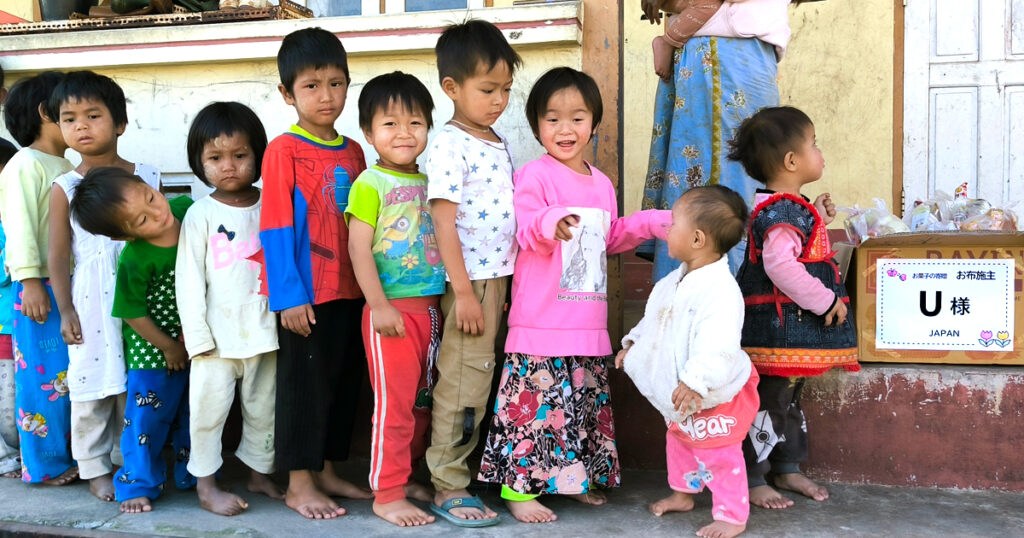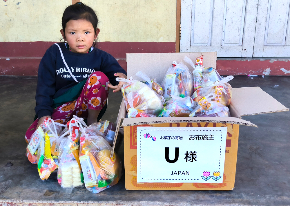 30人以上の孤児たちが暮らす仏教孤児院にU様がお菓子を寄進してくださいました。