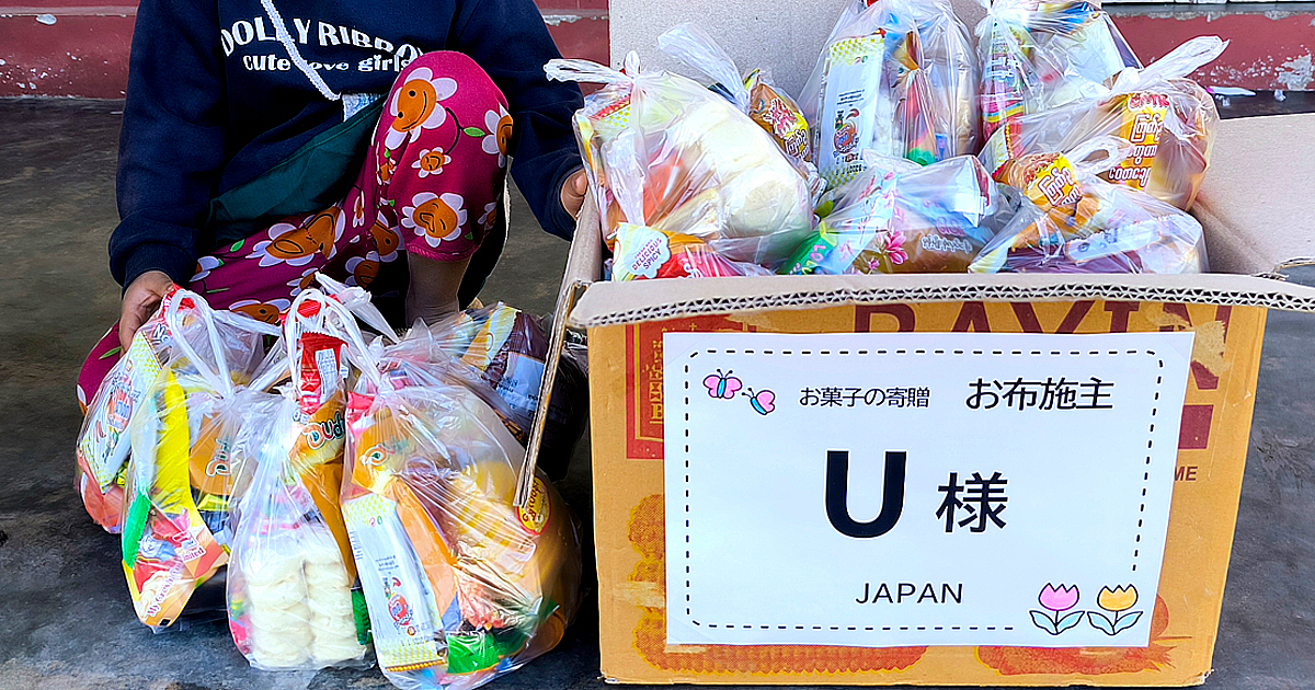 30人以上の孤児たちが暮らす仏教孤児院にU様がお菓子を寄進してくださいました。